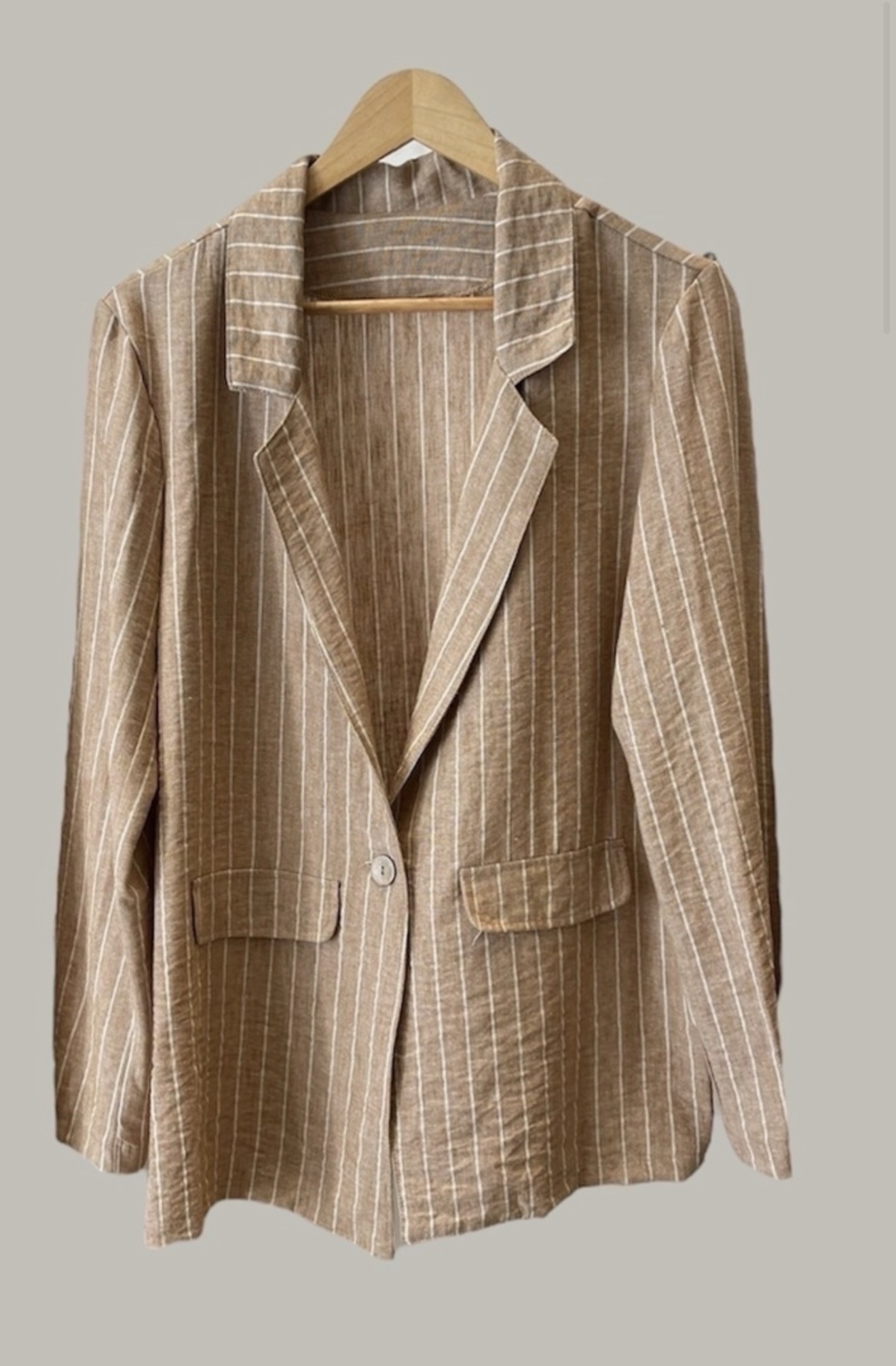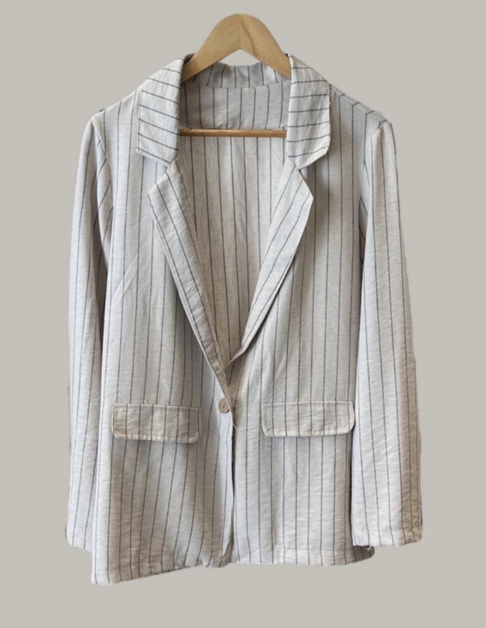 Blazer super fino confeccionado en lino rayado, tela importada, por lo cual, ingresa lote y si se agota no hay reposicion.
