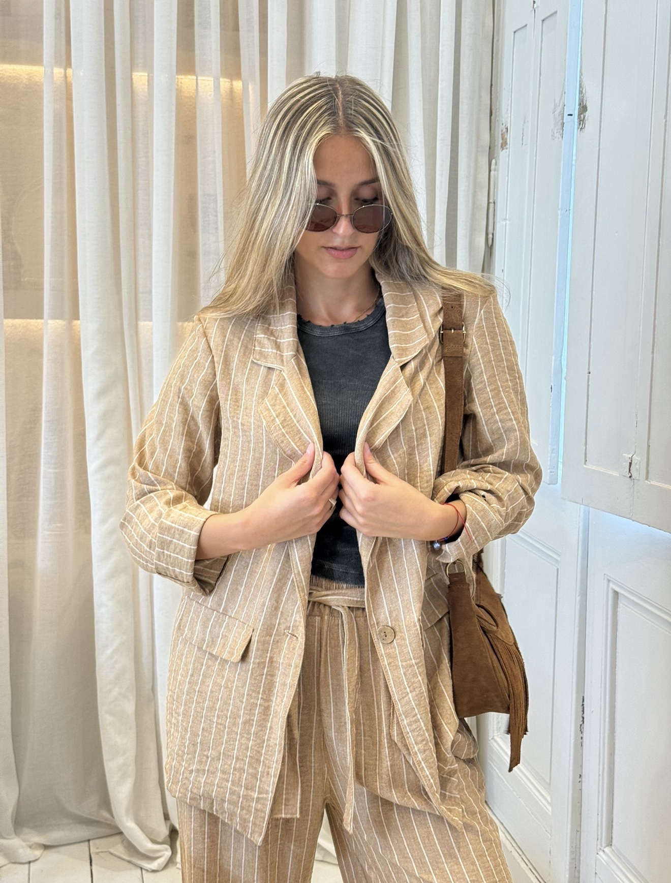 Llega Kenia, nuestro nuevo conjunto de blazer y pantalón en lino rayado: una apuesta fresca, elegante y atemporal, pensada para mujeres que buscan estilo sin esfuerzo.
